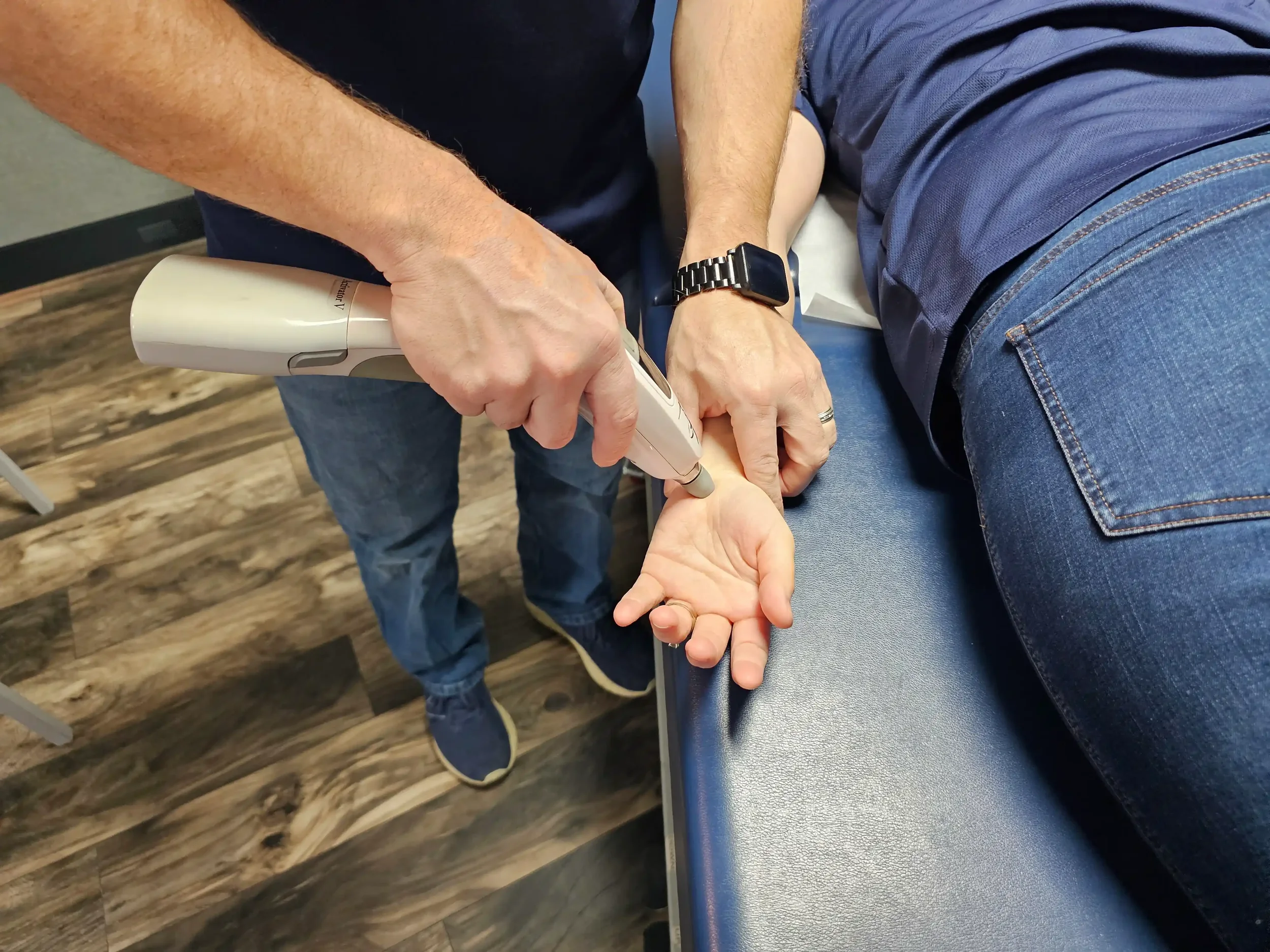 Cold laser therapy helps reduce inflammation around the median nerve and supports soft tissue healing.